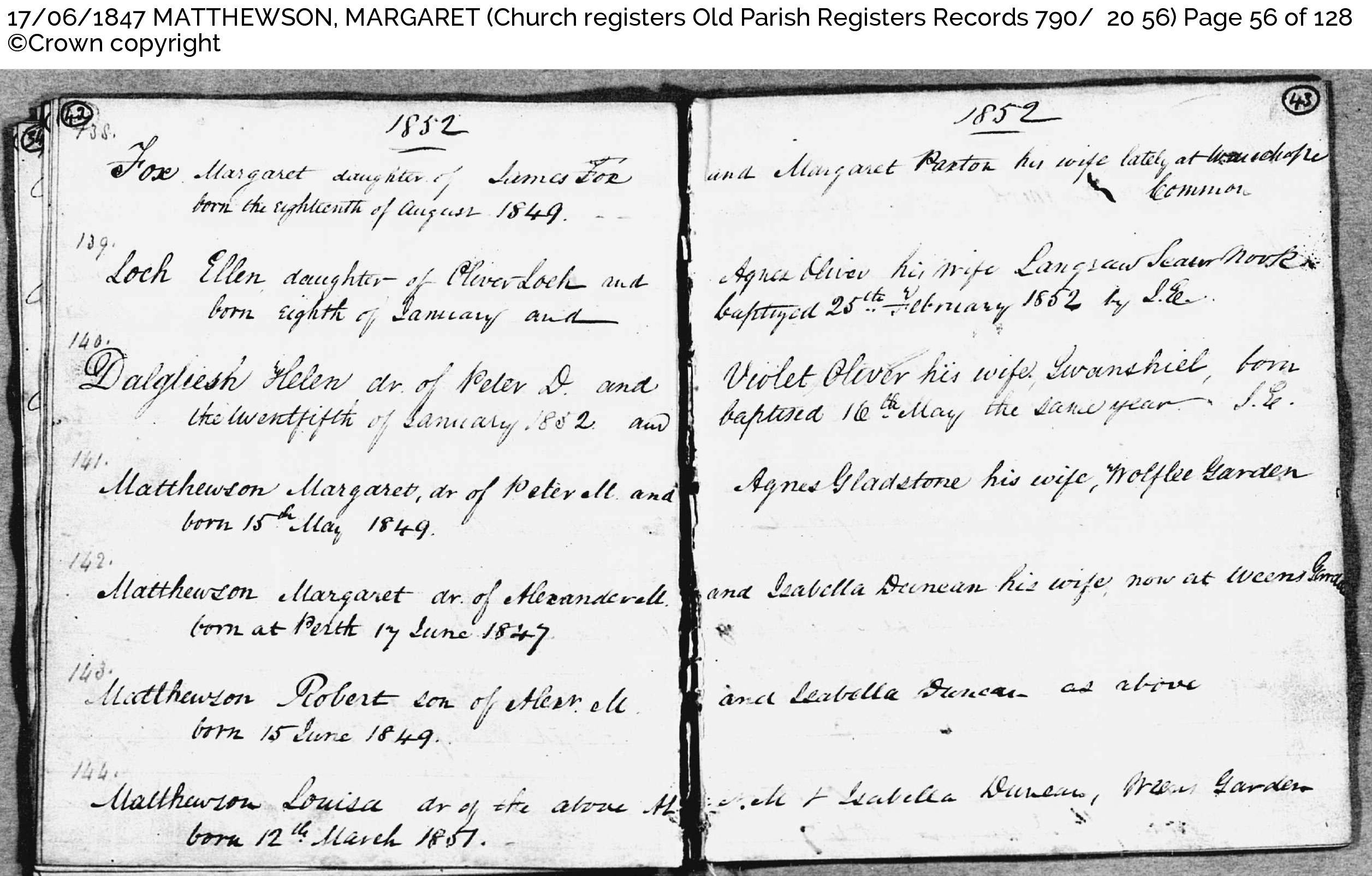 | Matthewson Births Marg. & Robert & Louisa | ||